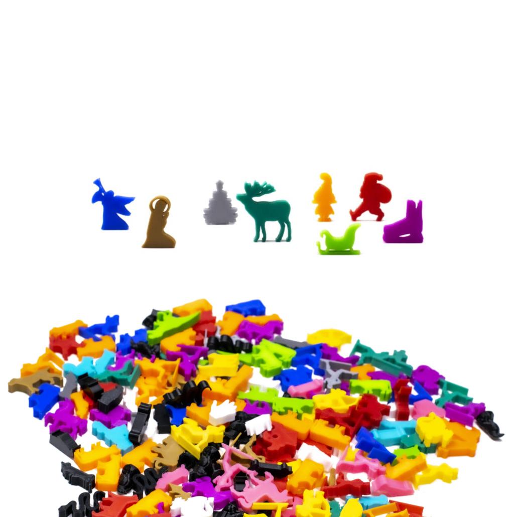 Karácsonyi figura szett 8db különböző karácsony témájú figurát tartalmaz, különböző (véletlenszerű) színekben. Használható társasjátékokhoz, DnD szerepjátékokhoz és egyéb játékokhoz, azok kiegészítésére és a játékélmény fokozására, dekorációnak, elveszett figurák pótlására.