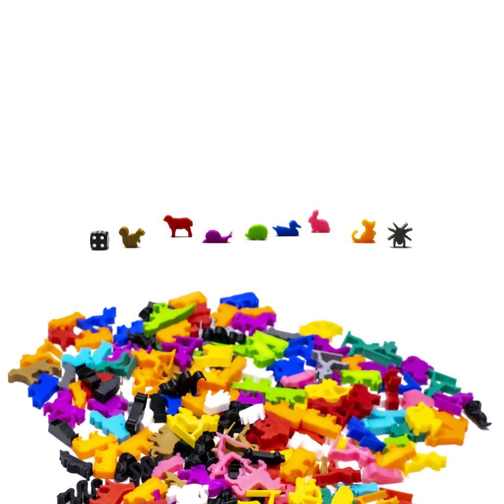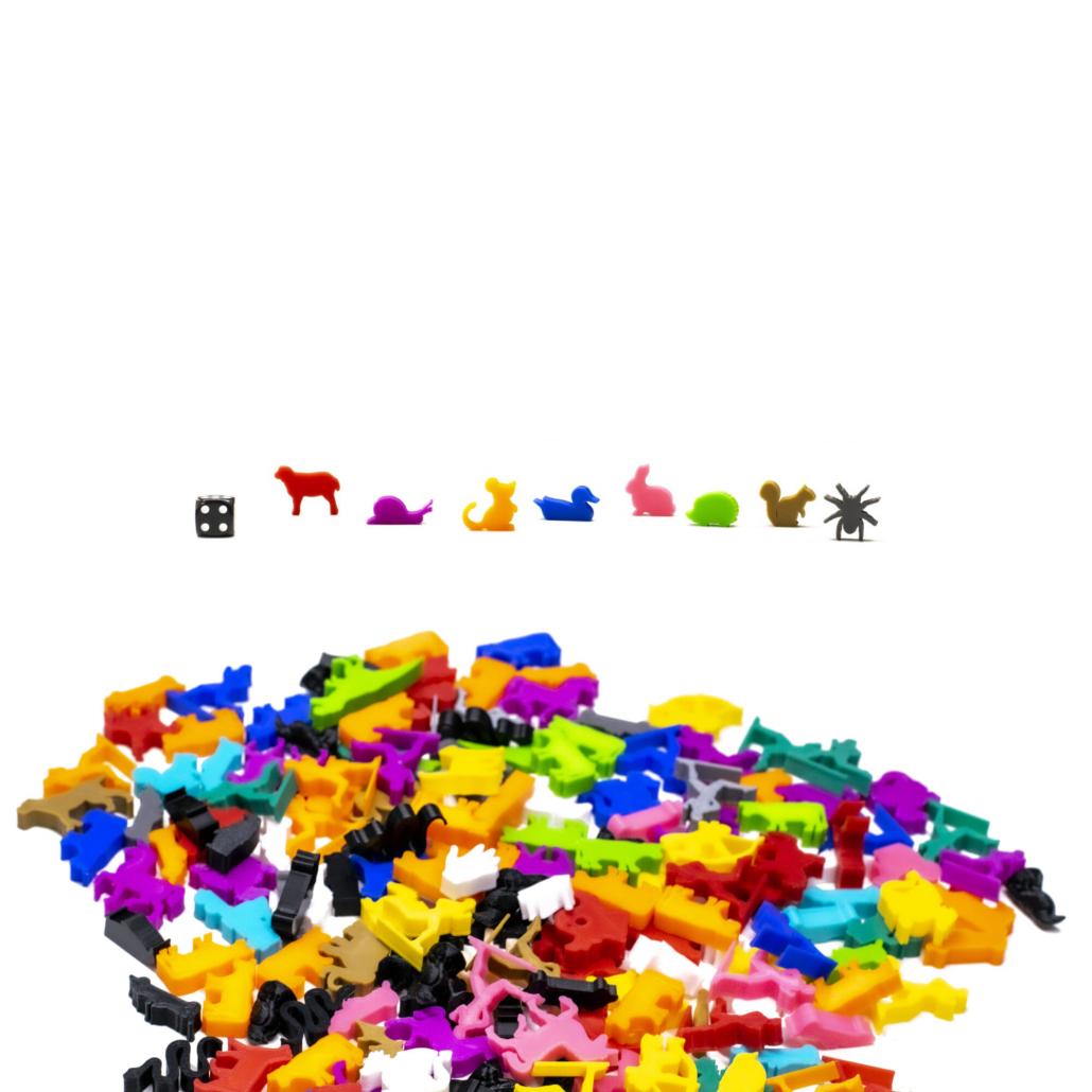 A Mező Állatai figura szett 8db különböző mezei állat figuráját tartalmazza, különböző (véletlenszerű) színekben. Használható társasjátékokhoz, DnD szerepjátékokhoz és egyéb játékokhoz, azok kiegészítésére és a játékélmény fokozására, dekorációnak, elveszett figurák pótlására.